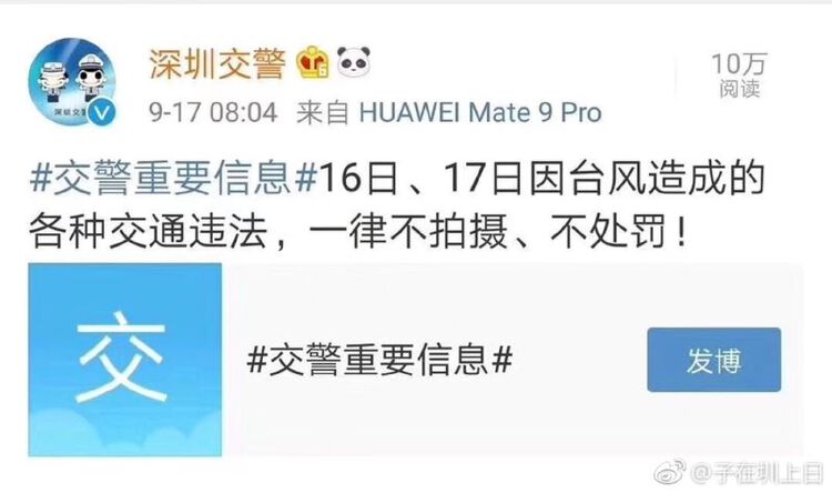 16日、17日因台风造成的各种交通违法,一律不拍摄、不处罚。