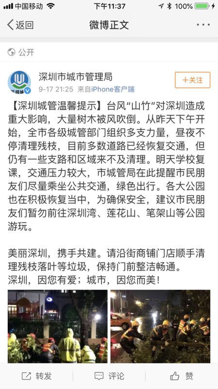 深圳市城管局已经发出温馨通知
