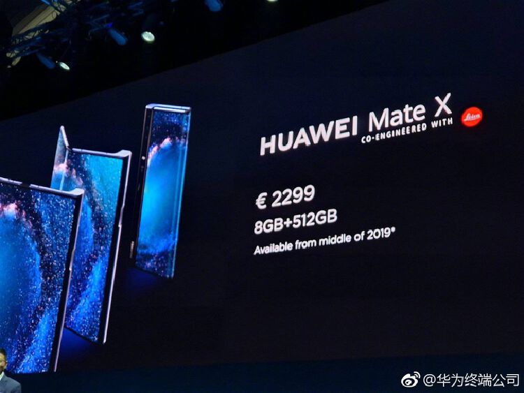 在2019世界移动通信大会(MWC)开幕前夕,华为于北京时间24日晚间在西班牙巴塞罗那发布5G折叠手机Mate X。这款手机折叠之后厚度仅为11毫米,合起来时中间无缝隙,华为消费者业务CEO余承东称为此工程师投入研发长达三年。该款手同售价高达2299欧元。