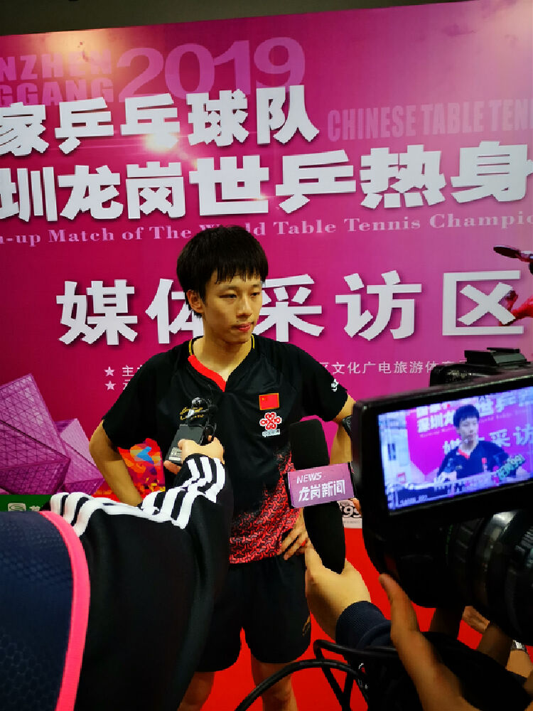林高远热身赛后接受记者采访。