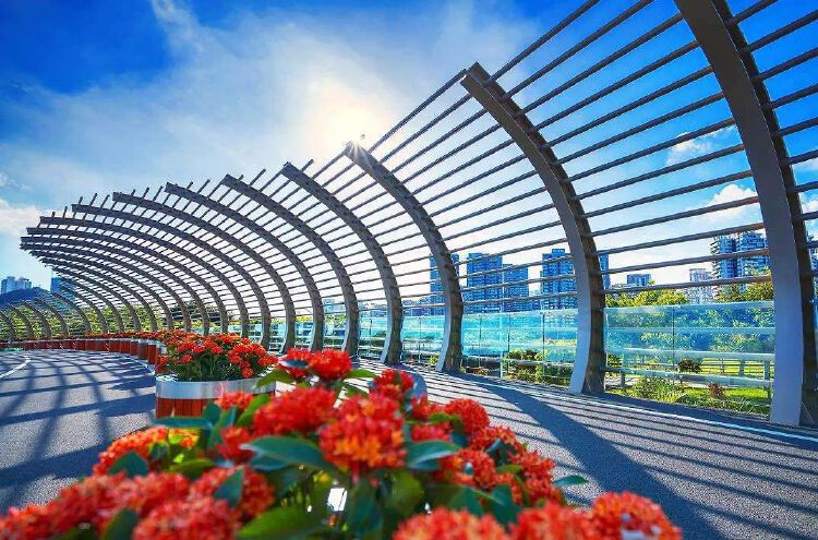清水绿岸、鱼翔浅底。2018年9月8日,大沙河生态长廊两公里示范段开园,迅速成为“网红”。大沙河生态长廊被誉为深圳“塞纳河”。今年国庆前将全线建成,届时13.7公里大沙河生态长廊将串联起西丽湖、大学城、高新区、深圳湾,塑造绿色飘带和城市项链。