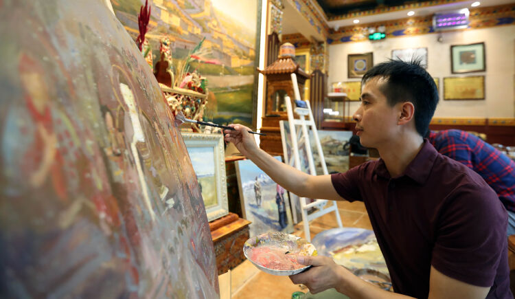 拉巴次仁出生于唐卡世家,是西藏高级工艺美术大师,多次参与西藏各大寺庙的壁画修复、绘制工程,并有众多美术作品及唐卡作品流传于世。拉巴次仁曾在全国各地奔走传播唐卡艺术,他对记者表示,“希望通过这个平台在深圳展示西藏非物质文化遗产及西藏唐卡的无穷魅力,让更多年轻人喜欢唐卡。”