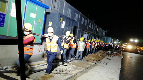 刚过元宵节,大多数工人还未返深,又逢抗疫趋严,进一步增加了人员组织和资源调配的难度,技术工人更是紧缺。时间紧,任务重。李苏华随即召集美芝股份的核心团队,紧急商议,发挥企业本土优势,紧急“征兵”,召回在省内过春节的近150名工人,并立即包车将工友接回深圳。最终根据工地实际情况投入项目管理人员6名、技术工人76名,分两批赶赴现场。