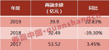 而随着2019年证券行情的转暖,市场对资金需求明显增加,截至2019年底,恒泰证券融资融券业务余额为人民币39.9亿元,较2018年末增长22.83%,但距离2017年53.52亿元的规模高点仍有不小的距离。