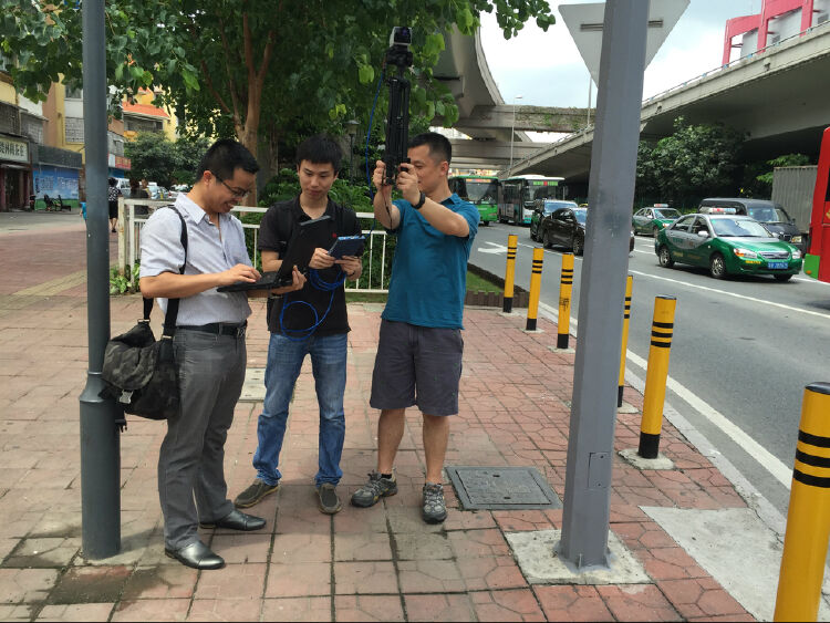 创业初期的陈宁(右一)走上街头安装摄像头。