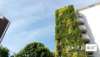 在炎炎夏日下,大楼的立体绿化让人倍感凉爽。在深圳建科大楼的西面,布满了一排排遮阳花架,上面种满了各种爬藤植物和花草。这些植物给大楼披上了一件凉爽的绿衣裳,有效地隔离了西晒的燥热。保安自豪地说,茂密的花草甚至吸引了小鸟筑巢。