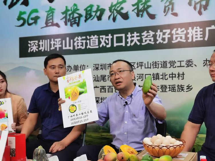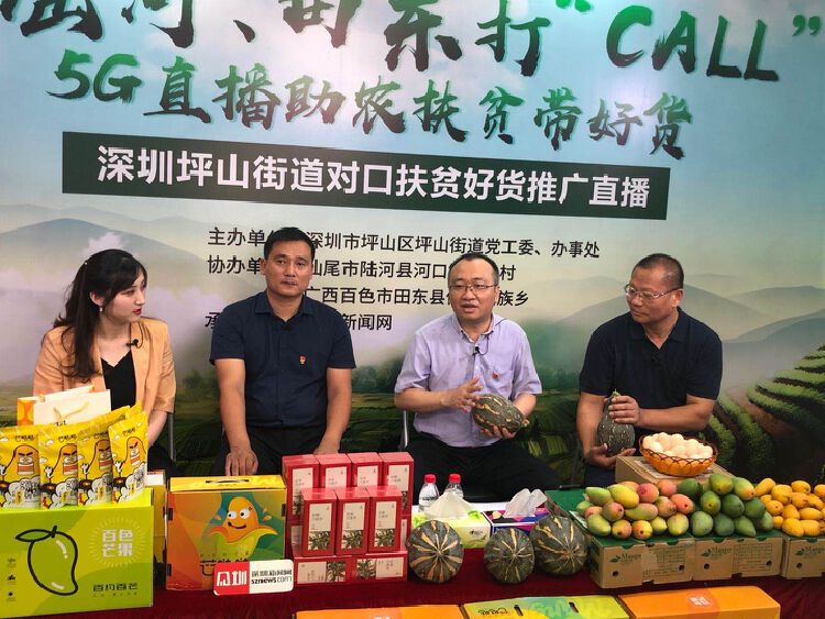 6月29日下午,由坪山街道党工委、办事处主办,汕尾市陆河县河口镇北中村、百色市田东县作登瑶族乡协办,深圳新闻网承办的“为陆河、田东打call!5G直播助农扶贫带好货”推广直播公益活动火爆上线。