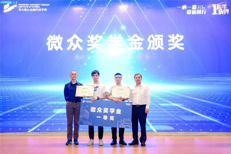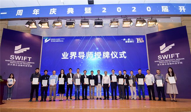 为鼓励品学兼优、特长突出的金融科技专业学生,微众银行冠名捐资设立“微众奖学金”,2020年首次评选。经过严格筛选,12名成绩优异、能力突出的优秀学生获此殊荣。当天,深大微众金融科技学院还聘请了21位粤港澳大湾区行业精英人士担任业界导师。
