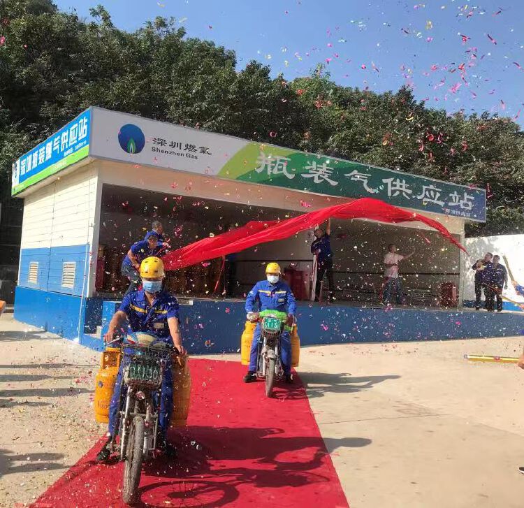 2019年,随着装配式瓶装燃气供应站建设模式日益成熟,市、区政府主管部门给予装配式供应站建设模式更多的支持和许可。石油气公司大胆提出以装配式模式建设粤宝Ⅰ类瓶装燃气供应站,“装配式”建筑模式采用了整体化预制,模块化安装,标准化运行的模式,相比土建模式具有占地面积小、设置灵活机动(可快速移位)、非永久占用土地等优点,该想法获得龙岗区住建局、街道土地监察大队的认可和支持。2020年5月,粤宝供应站建设工作正式启动。在政府主管部门的大力支持下,粤宝供应站最终获得消防验收和瓶装燃气供应站建设许可,于11月24日正式营业。