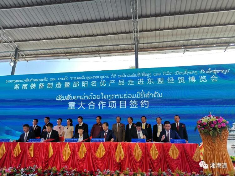 ▲湖南装备制造暨邵阳名优产品走进东盟经贸博览会签约仪式