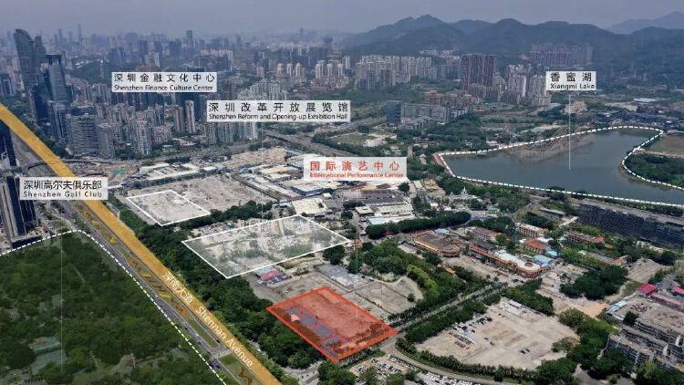 项目选址: 国际演艺中心选址位于深圳市福田区香蜜湖片区中区,深南大道北侧,香蜜湖山海生态通廊东侧。