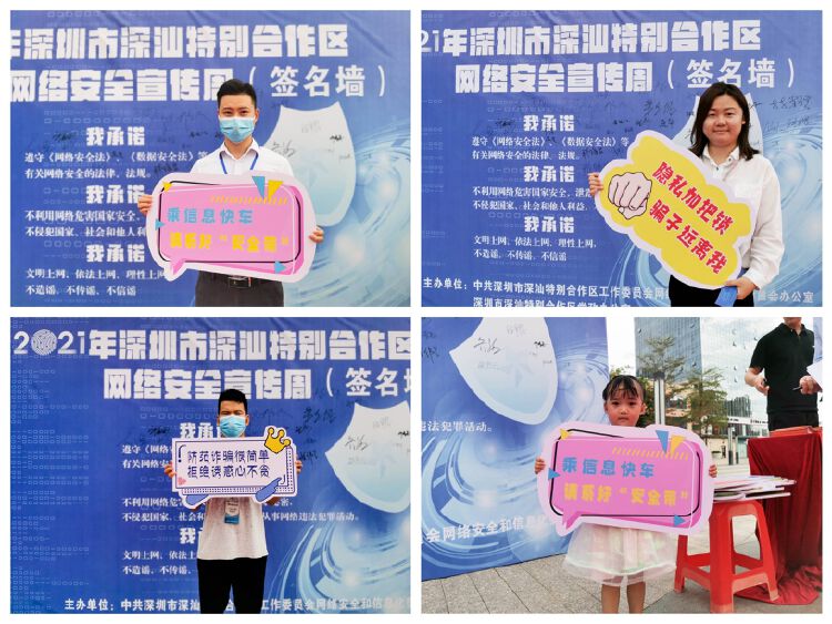 深圳市公安局指导各分局、各派出所结合工作实际,通过线上线下结合,选取社区、广场、工厂等重点区域,以贴近市民日常生活的方式向公众进行科普教育;中国人民银行深圳市中心支行组织开展网络安全第一课等系列教育活动,加强金融信息系统网络安全管理;深圳市总工会与市妇联通过家庭与社区联动宣传,开展示范性网络安全主题群众性教育等活动;深圳团市委通过深入开展青少年网络安全科普讲座、开通青少年权益保护热线等方式引导提升请少年网络素养。