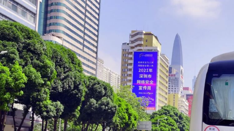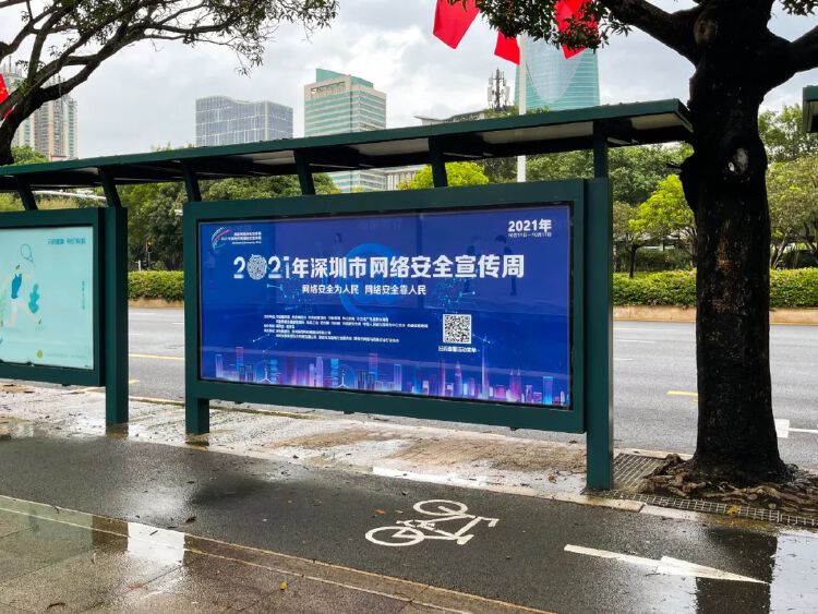 2021年深圳网络安全宣传周期间,深圳以贴近大家日常生活的方式,在全市户外大街小巷进行一系列特色主题宣传,向市民科普网络安全知识。