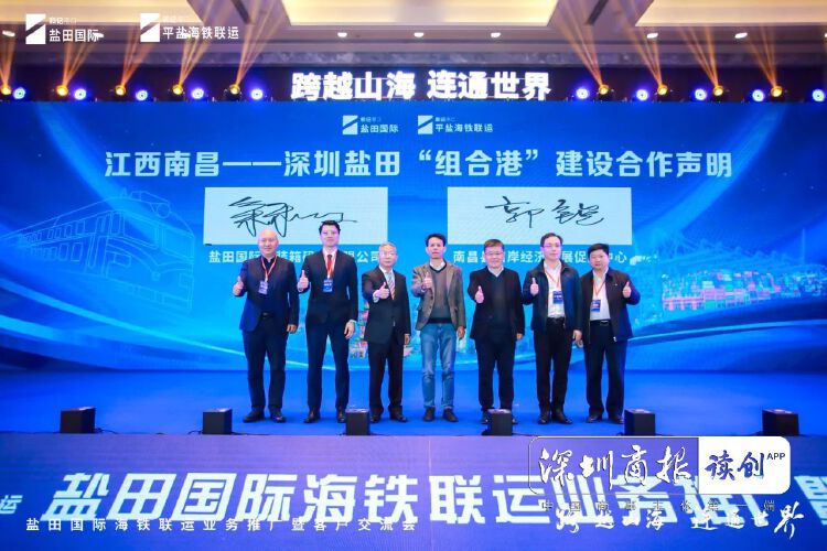 3月21日,盐田国际海铁联运推广暨客户交流会在江西南昌举行,《南昌—盐田“组合港”建设合作声明》正式签署。南昌内陆港将围绕“组合港”概念推出升级版配套服务,打造海铁联运高质量发展样板,助力当地对外贸易领域迈上新台阶。
