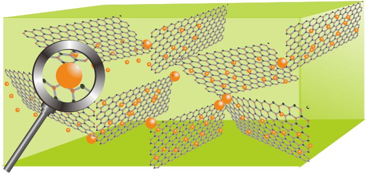 △橘色的是纳米银,可以在原来的塑料材质中起到桥梁链接的作用,形成适用性较强的3D导热网络,图片来自中科院深圳先进院。