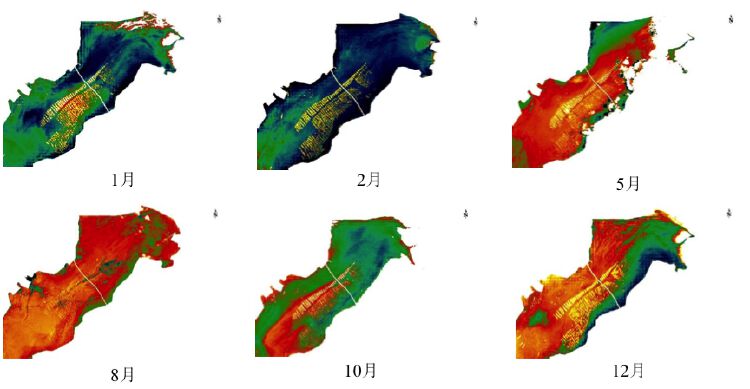 △深圳湾生蚝养殖区叶绿素浓度变化情况,绿色部分浓度低,红色部分浓度高(图自先进院)