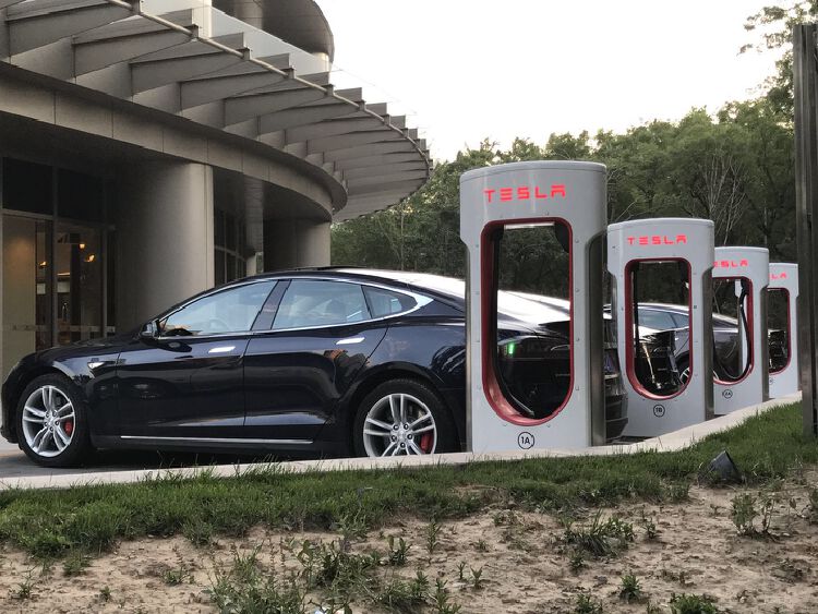 (特斯拉电动汽车和它的充电桩,摄于北京)
