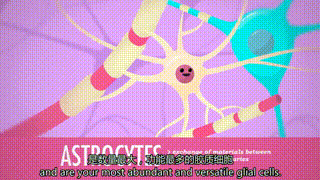 (神经细胞和胶质细胞的动画形象,视频来源:Youtube “The Nervous System”)