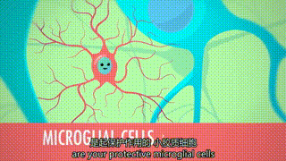(小胶质细胞的动画形象,视频来源:Youtube “The Nervous System”)