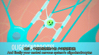 (少突胶质细胞的动画形象,视频来源:Youtube “The Nervous System”)