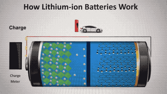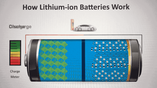 △放电时,锂离子从负极移动到正极(图片来源:How Lithium-ion Batteries Work)