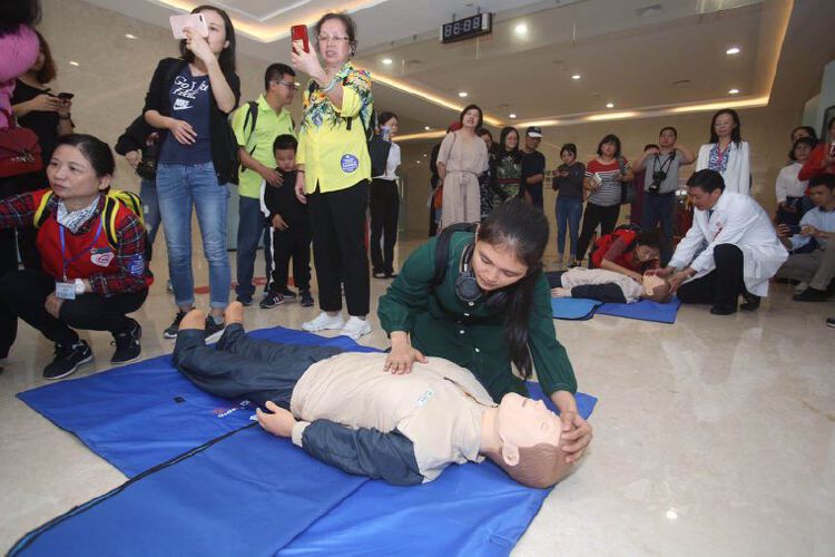 可是,AED如何使用呢?在现场,有了医护、急救人员的手把手教学,市民们正在体验AED。
