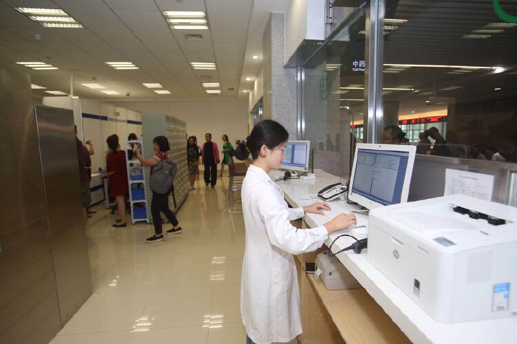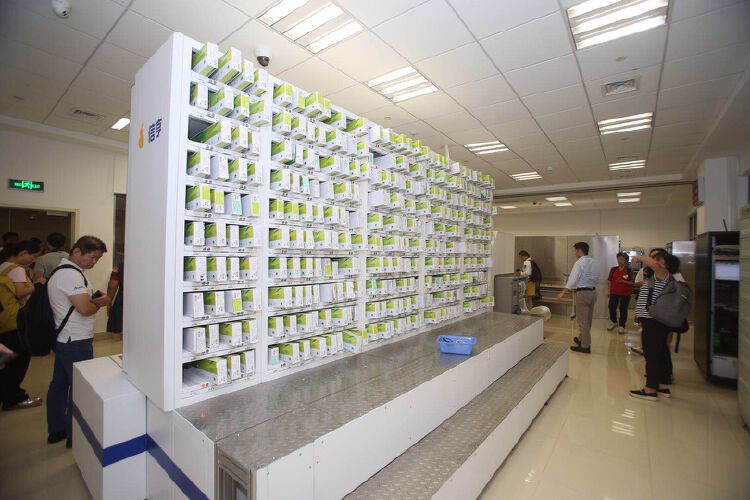 当智能调配机系统接收处方信息后,指引药师从亮起灯光的盒子取出正确的药品进行调剂。调剂完成后将药筐放到传送系统,药筐自动传送到对应的窗口前台,窗口上方显示屏出现患者姓名,患者即可取药。因为智能化,8秒可调配完成一张处方,患者在看完病时,其药方就已经传到智慧药房,等患者到达药房时,药都已经配好了。当天未及时取药的患者,系统会在次日自动发送短信提醒患者取药。