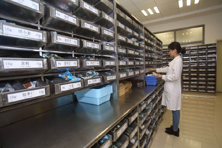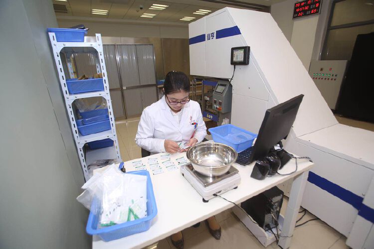 中药房配备了小袋装配方颗粒自动发药机,这是广东省首台全自动小袋装配方颗粒发药机,每剂发药速度只需3秒。后期还会引进中药饮片自动发药机,实现中药房配方发药全自动化,药师有更多的时间为患者提供药事服务。