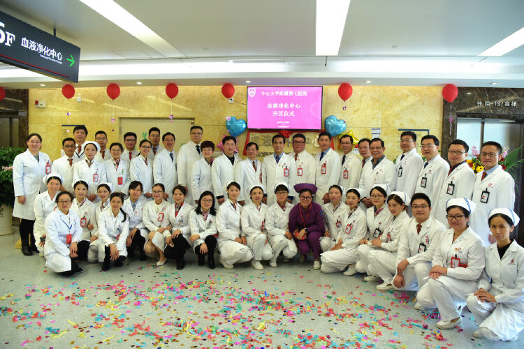 血液净化中心位于中山七院住院部6层东侧,总面积约1350平方米,设有接诊候诊区、治疗准备区、透析治疗区、污物处理与洗涤区、办公教学休息区、设备辅助区;规划配备41台国际先进的血液透析/滤过机、8台连续肾脏替代治疗机(CRRT)、2台血浆治疗仪、水处理机。初期开放透析床位15张和CRRT机6台。可开展血液透析(HD)、血液透析滤过(HDF)、血液滤过(HF)、单纯超滤(ISOUF)、血液灌流(HP)、床旁CRRT、血浆置换(TPE)、血浆吸附、人工肝等技术。