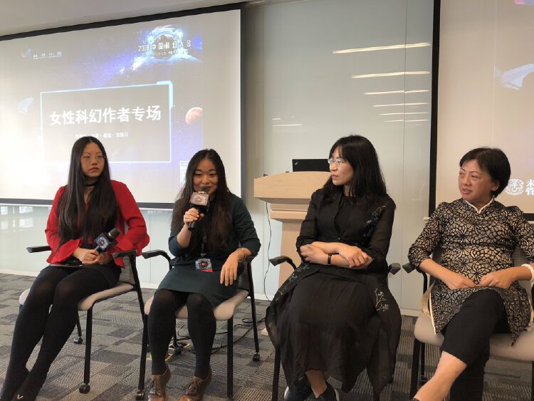 2018中国科幻大会期间有两场女性视角的论坛,在23日下午于腾讯滨海大厦举行的女性科幻作家专场活动中,赵海虹、凌晨、昼温、双翅目四位女性科幻作家畅谈了她们作为女性的科幻写作与发表的经历与感想。