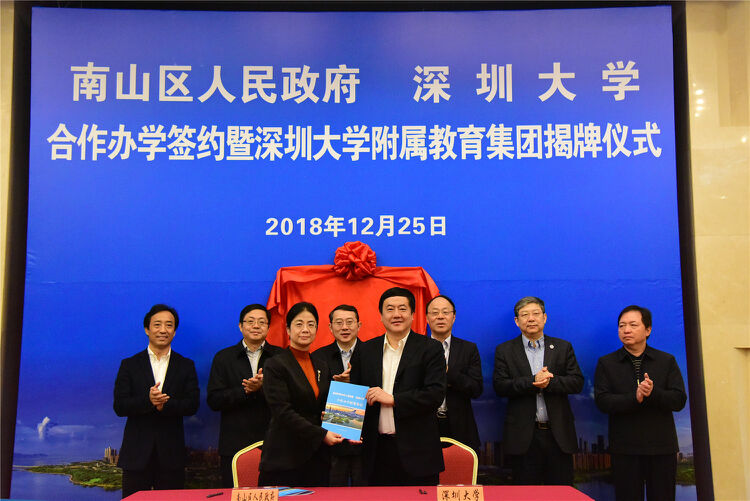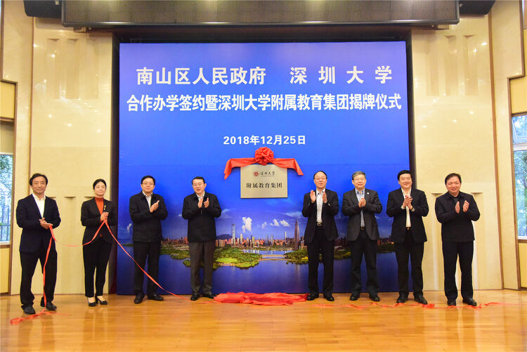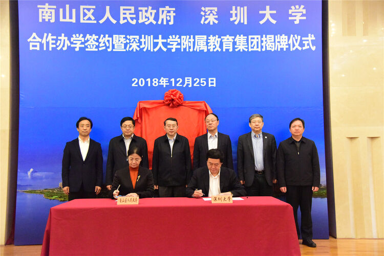 深圳再添一个优质教育集团!12月25日,深圳大学与深圳市南山区人民政府正式签约合作办学。深圳大学附属教育集团(以下简称“教育集团”)宣告成立,该集团所属学校包括1所初中、4所小学、3所幼儿园。这是南山挂牌成立的第七个基础教育集团。