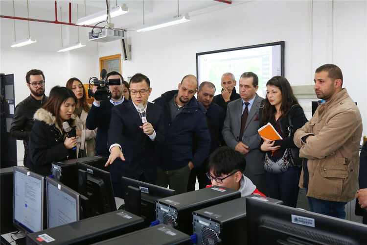 12月29日,16位阿尔及利亚国家级媒体记者组成的采访团参访深职院。记者团一行先后参观走访了深职院的华为信息与网络技术学院(简称“ICT学院”)实训室、智慧教室和学生社团,了解该校ICT学院的建设成果与发展经验。