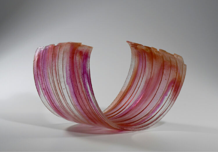 “不确定原理”系列作品超越形状的抽象本质,没有底座,没有上下左右之分,造型如同运动中的力量,但颜色却又在玻璃浆的流动中精准细腻呈现,就像寒冷中的波浪被冻结在时间和空间一般。朱丽叶·勒彼里耶说,她创作的是一种流动,而这个动态瞬间被结晶的玻璃所凝结。