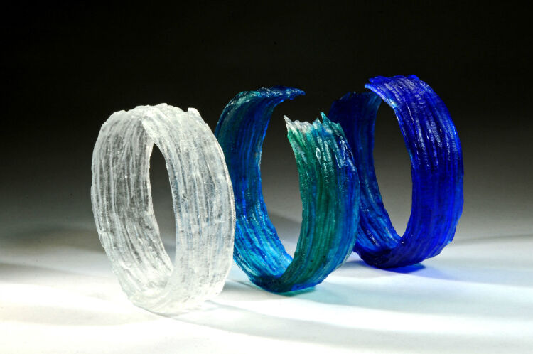 朱丽叶·勒彼里耶很喜欢这件作品还有一个原因,就是色彩,可以从中看到一种色彩的渐层过渡,从透明到深沉如黑的蓝,颜色的渐近,同时暗示着时间和玻璃流动的轨迹,又像是两个人的关系,从相识到相知,从浅到深,由淡渐浓。朱丽叶·勒彼里耶说,这是目前能够代表她的最好的作品。