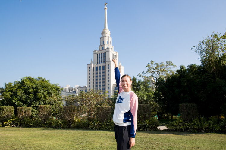 手指着深圳北理莫斯科大学永久校区主楼顶端金光闪闪的五角星,莎拉波娃愉快地留下倩影。她说:“2018年初我第一次到深圳参赛,当时就看到赛场旁边正在修建的这一片建筑,我很好奇它们是什么?因为我注意到了楼顶的星星标志,这让我们联想到了莫斯科的大学。原来这是中国和俄罗斯合办的高等学府啊!我很荣幸今天能到这里参观,和学生们交流。虽然我并没有真正走进这座建筑,但是她从外面看起来真的很漂亮,感觉她会成为地标性建筑。当然,校园里教育和文化才是最重要的,这是来自世界各地的学生为之努力的方向和目标。”