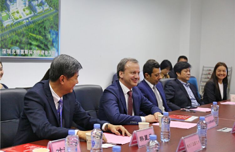 3月12日下午,俄罗斯联邦前副总理、国际棋联主席阿尔卡季·德沃尔科维奇来到了深圳北理莫斯科大学(以下简称“深北莫”)。与他同行的,还有国家体育总局棋牌中心主任、党委书记朱国平,国家体育总局棋牌中心副主任、国际棋联副主席、中国国际象棋协会副主席叶江川,国际棋联司库、前世界冠军诸宸等数位国际象棋界重要人物。他们希望能借深北莫这一平台,推动龙岗乃至深圳的国际象棋发展。