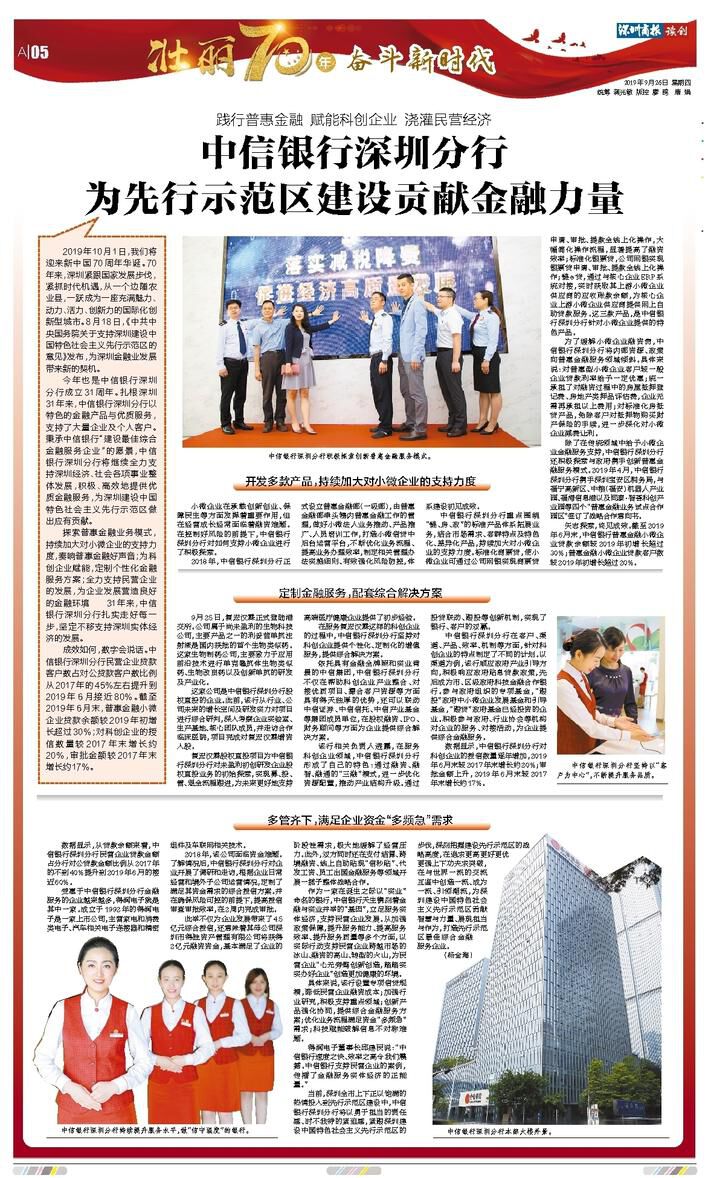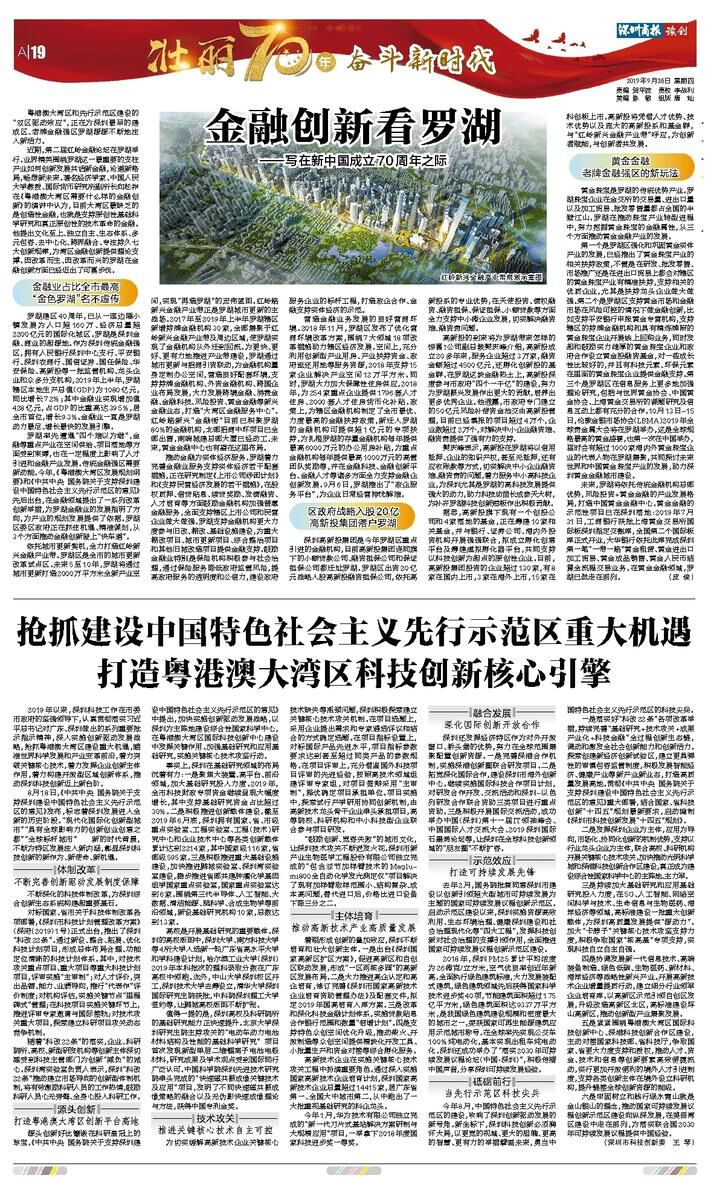 70年砥砺奋进,70年谱写辉煌。9月26日,深圳商报以68个版的鸿篇巨制庆祝新中国成立70周年,同时以6个四连版长卷的形式,全面展示深圳金融行业的辉煌成就,充分报道深圳各行各业奋斗前进的足迹。