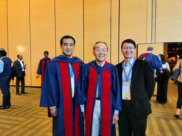 ▲何裕隆教授、杨东杰副教授与国际知名肝胆胰外科专家、美国外科学院名誉院士彭淑牗教授合影