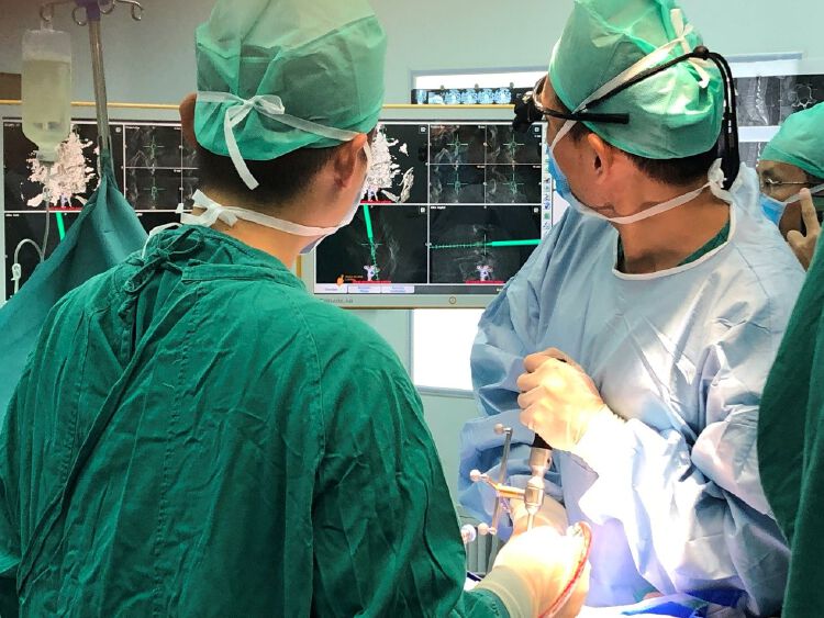 据了解,中山七院骨科新购置的Brainlab脊柱导航系统,被誉为脊柱内固定手术的“GPS导航仪”,精确度高(偏差0.1mm),是国际著名的脊柱手术导航品牌。