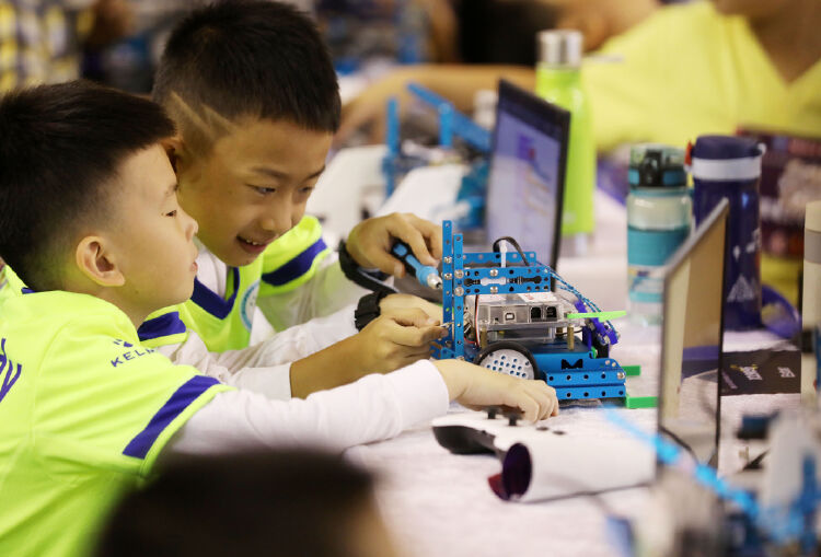现场互动科普课程,吸引了许多青少年打卡体验。记者了解到,这些科普课程由参展企业设计,在科普导师指导下进行,课程包括:VR虚拟眼镜体验、编程游戏、机械搭建、虚拟无人机、机器人足球比赛、VR海洋探险与滑雪互动等。
