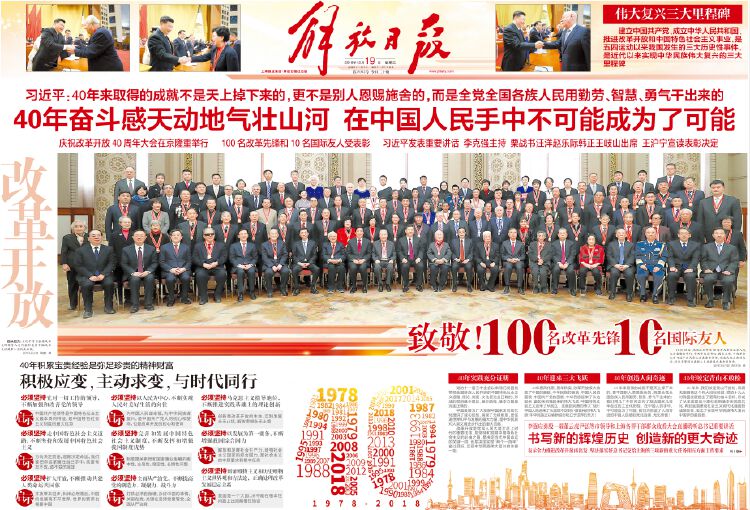 40年,这是一段取得“史诗般进步”的历程,也是一个“人类发展史上最激动人心的例子”。没有改革开放,就没有中国的今天,也就没有中国的明天。这场中国的“第二次革命”,让一个古老的国家焕发出奋斗的神采,让十几亿人为梦想持之以恒,让40年的时间里曙光升腾、万物生长,激荡起生机勃勃的复兴气象。