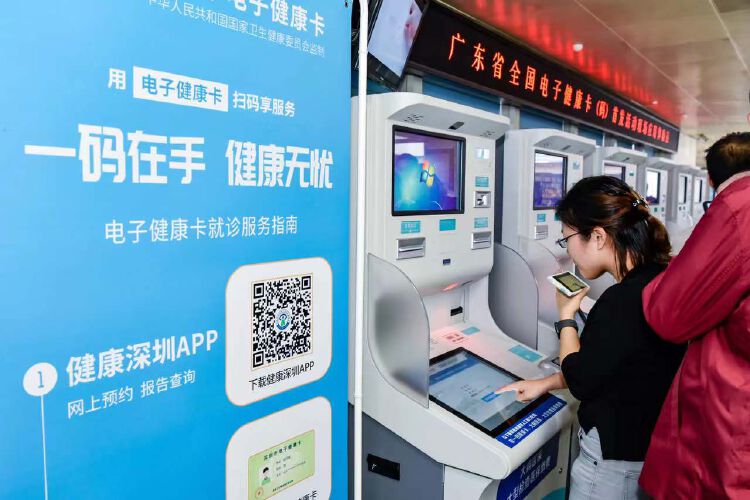 2018年12月27日,广东省首个“全国电子健康码”在深圳诞生。电子健康码是由国家卫健委统一规划设计的医疗健康服务卡,关联市民的个人信息、身份证、社保卡等信息,并以“二维码”的形式存在市民的手机里,成为一张具有身份识别功能的“健康身份证”。市民只要打开手机亮出二维码,从预约、挂号、看诊到检查检验、付费、取药、看报告,都能刷码搞定。