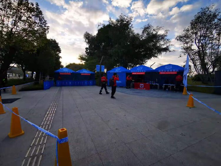 在深圳湾万象城,杨超和深圳公益救援队的近220名伙伴们一大早就整装待发,为半程马拉松的跑者提供救援保障。今年深马,深圳公益救援队共投入25辆救护车、23个医疗点和140台AED。杨超热爱跑步和户外运动,但连续几年深马他都是参加保障,无缘比赛。对此他说:“深马是自家门口举行的国际性比赛,能为深马做好服务我觉得非常光荣和开心。”他表示,今年深马赛事组织更加人性化,跑者的健康安全更有保障。他所在的医疗点有一名跑者晕倒,救护车第一时间将其送往蛇口人民医院救治,效率非常高。