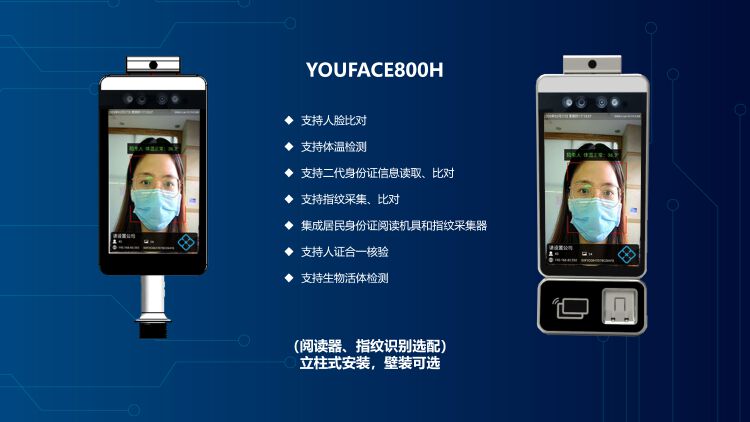 这款人脸机不仅带体温,可替代人工额温枪的使用,也可以考勤,后台配大数据分析。该设备满足企业开工考勤测温需求,搭配闸机使用可以做到人证合一,提高入口的安全指数,减少人为出现的遗漏。