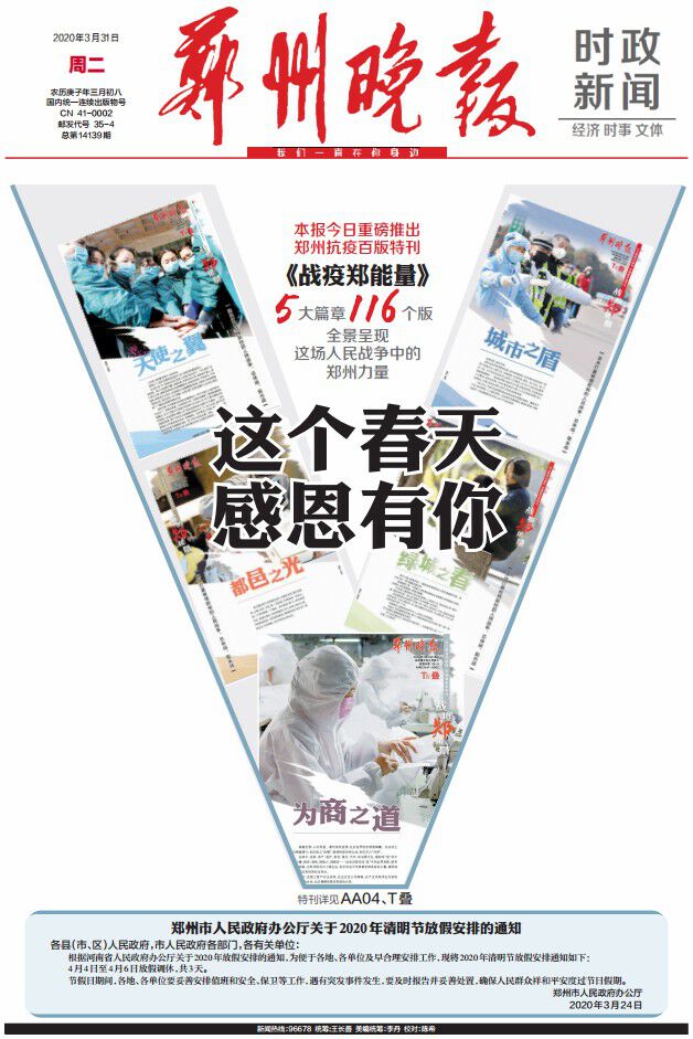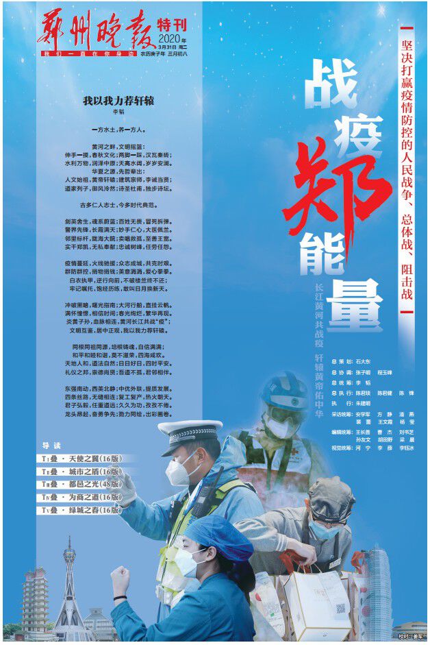 郑州晚报116个版大型特刊《战疫郑能量》,通过5大版块致敬战疫中的凡人力量。