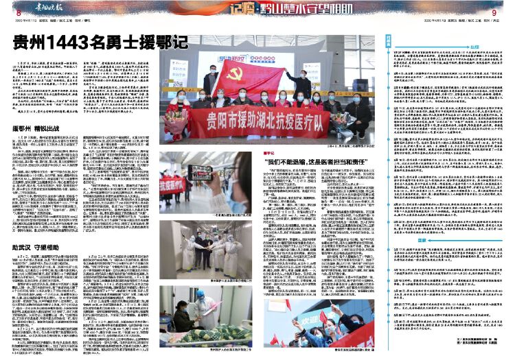 贵阳晚报特刊《记疫——战疫中的贵州力量》,致敬最美逆行者,铭记援鄂英雄那些鲜为人知的动人瞬间。