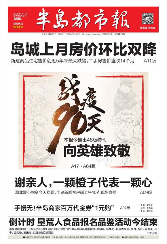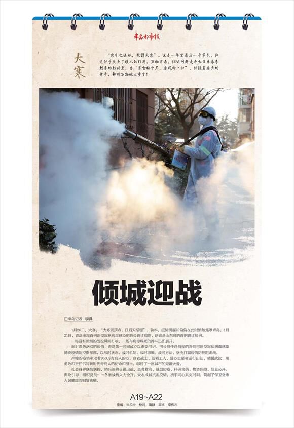 半岛都市报48个版特刊《战疫90天》 ,以节气日历的形式,记录抗击疫情过程,向抗疫英雄致敬。