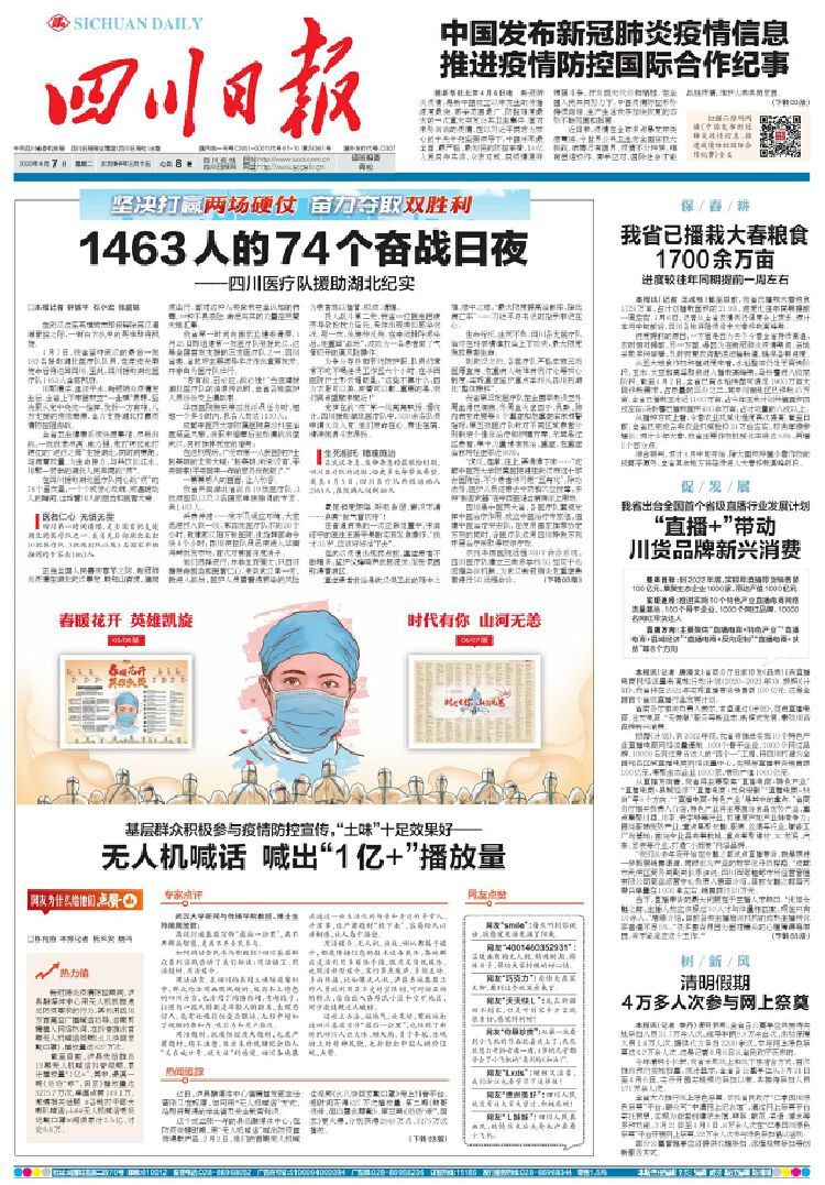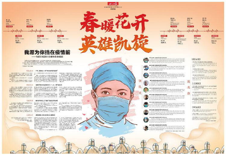 四川日报《春暖花开 英雄凯旋》专版,用最美祝福向四川援鄂医疗队医护人员致敬。