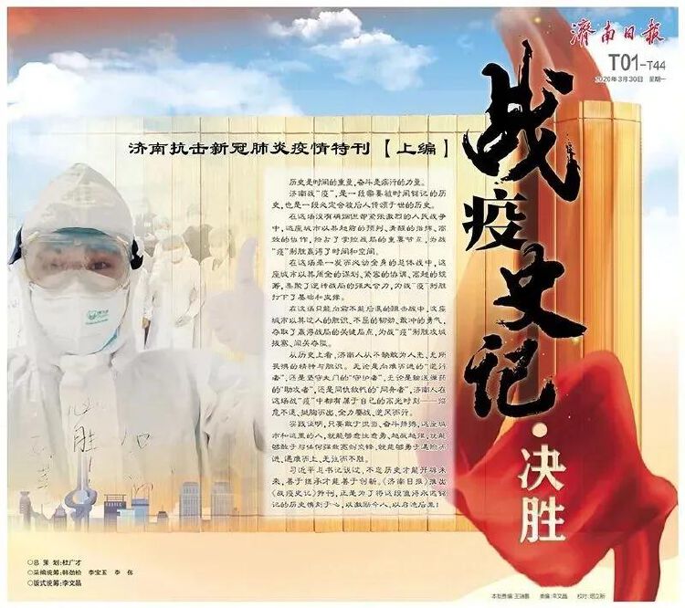 济南日报《战疫史记》特刊分上下两个篇章,上编为《决胜》,下编为《成城》,各44个版。