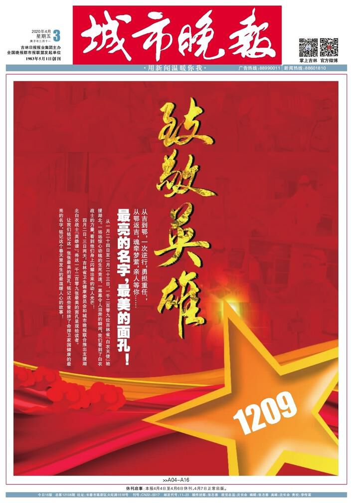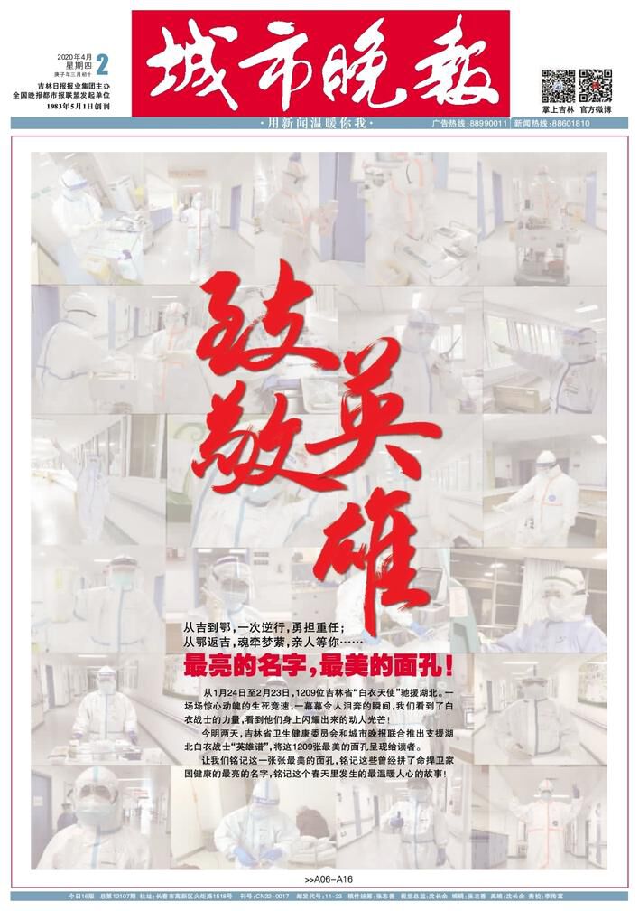 城市晚报《致敬英雄》,将1209张支援湖北白衣战士最美面孔呈现给读者。